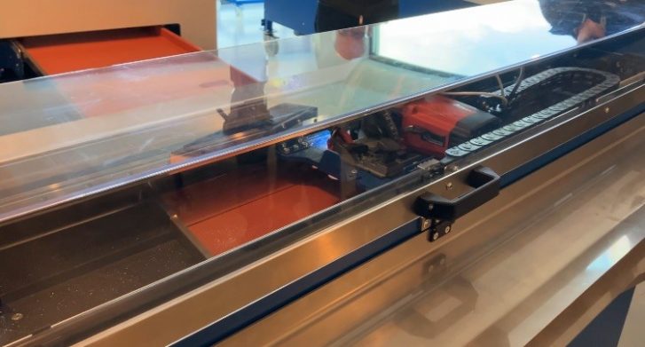 Coupe par scie circulaire motorisée et pilotée par la commande graphique et tactile