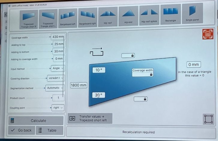 La profileuse idéale et automatique pour vos coupes d’arêtiers, pignons, jouées de lucarnes, noues grâce à sa coupe pivotante en sortie jusqu’à +/- 60°. Pas de limites de longueur minimale de bacs et qualité de profilage assurée avec la coupe post profilage